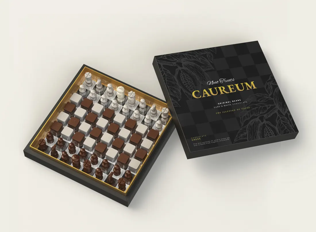 Satranç oyununun tadını çıkarmanın eğlenceli ve benzersiz bir yolu olarak bir kutu çikolata tasarladık.