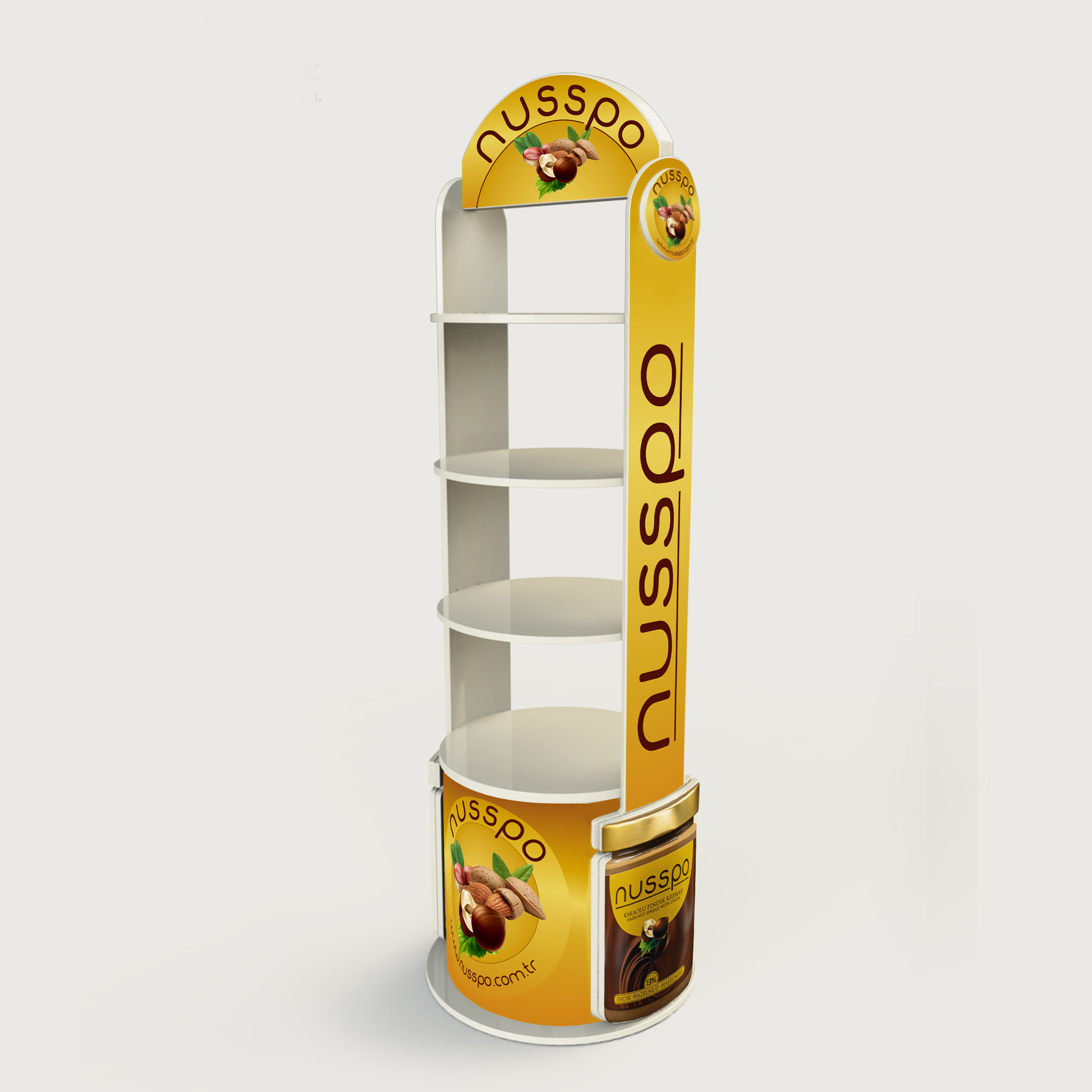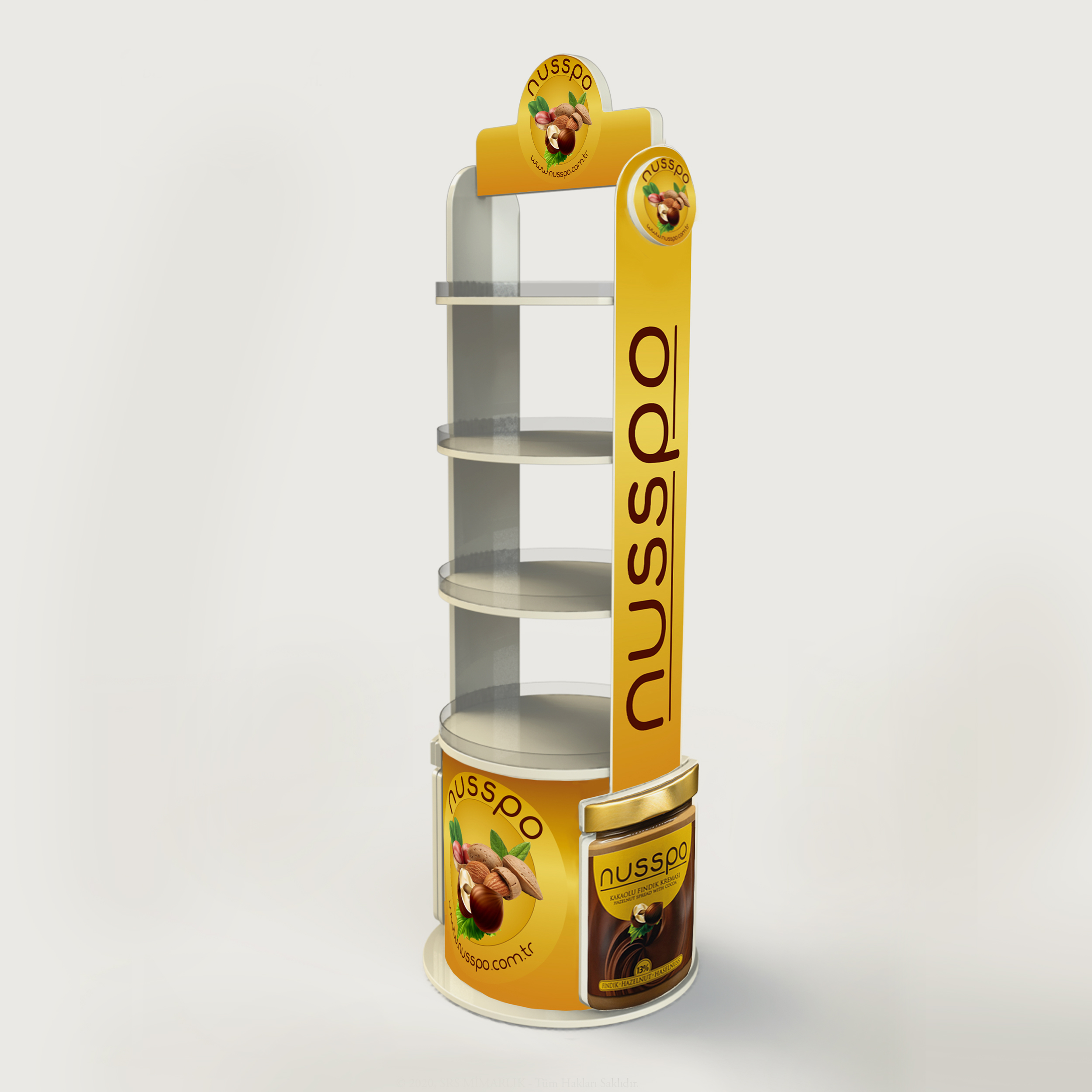 Yıllardır titizlikle çalışılan, özenle seçilmiş hammaddeler kullanılarak, üstün kalite ve sağlıklı ürün ilkeleriyle yönlendirilen Nusspo ürünleri, müşterilerinin beğenisi ile geliştirilmektedir. Nusspo Kakaolu Fındık Kreması için tasarladığımız teşhir standı, ürünlerin organik yapısını vurgularken, müşterileri kendine çeken şık tasarımıyla pazarda öne çıkıyor.