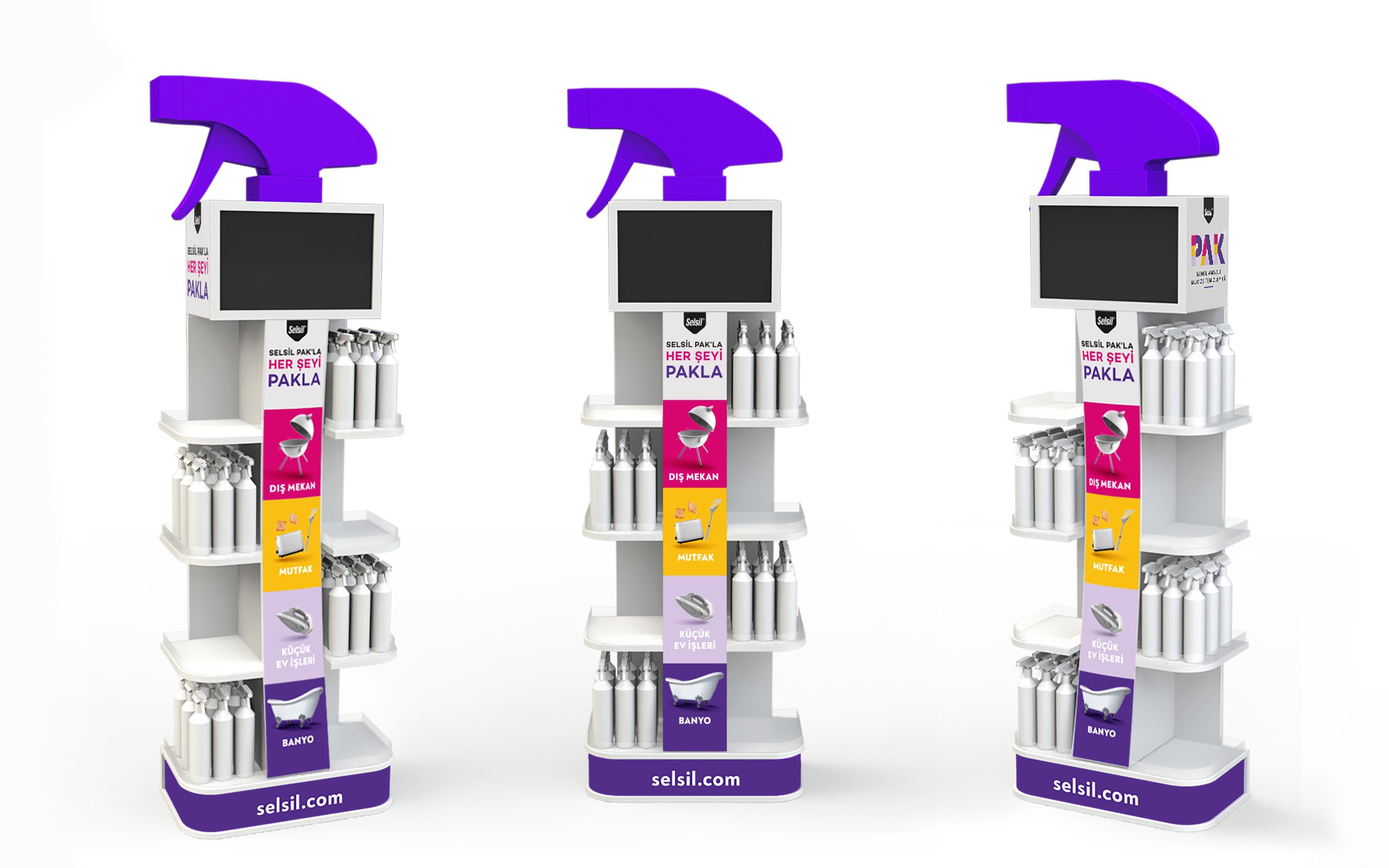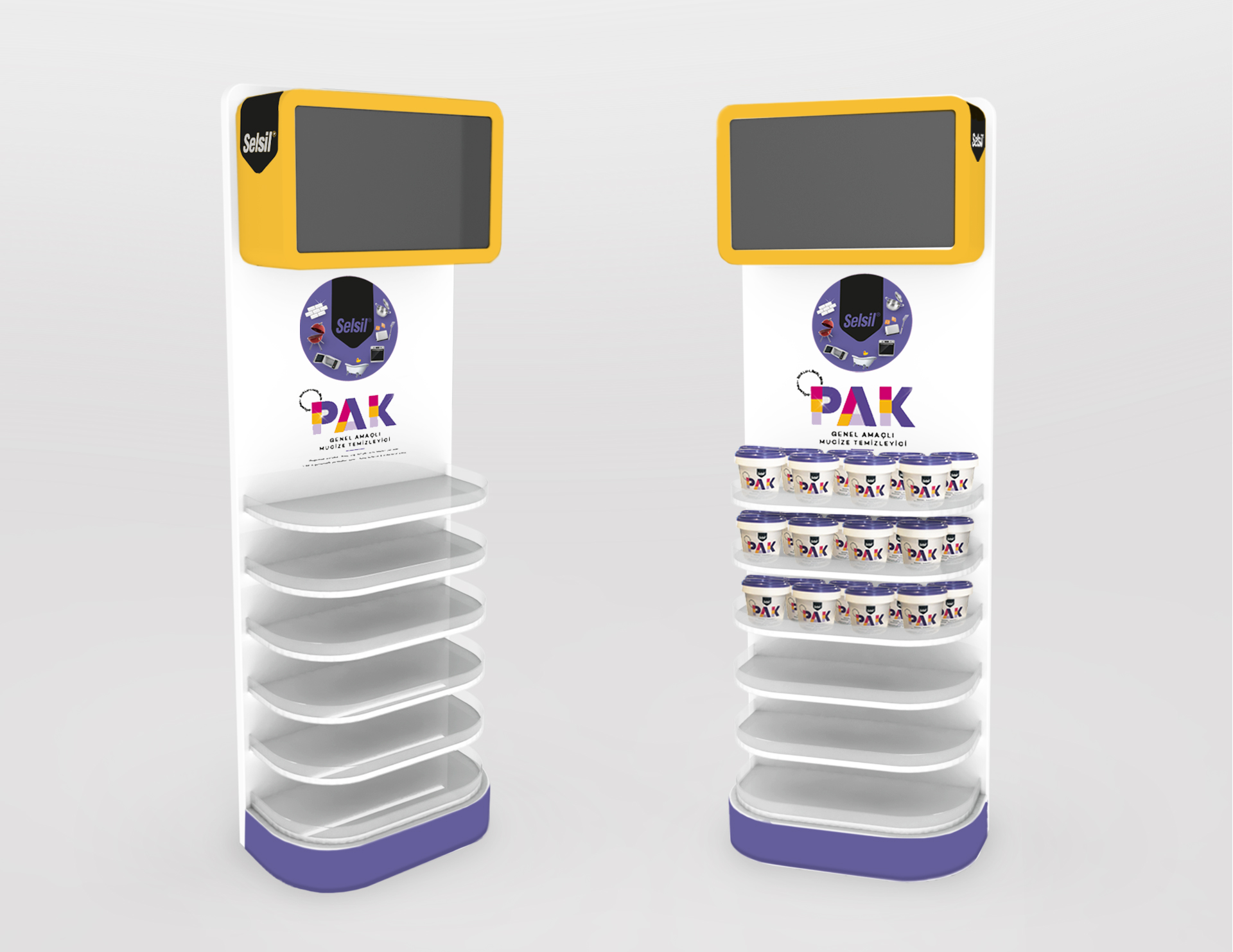 Beyaz ahşap gövde üzerine canlı renklerin görsel uygulamaları ile markanın ürünlerini öne çıkarmak için oluşturduğumuz Selsil stand tasarımları ürünleri müşterilerin kolayca görebilecekleri ve ulaşabilecekleri şekilde sergilemektedir. Tasarım ayrıca marka ve ürünleri hakkında ek bilgi sağlayan bir ekran ile donatılmıştır.